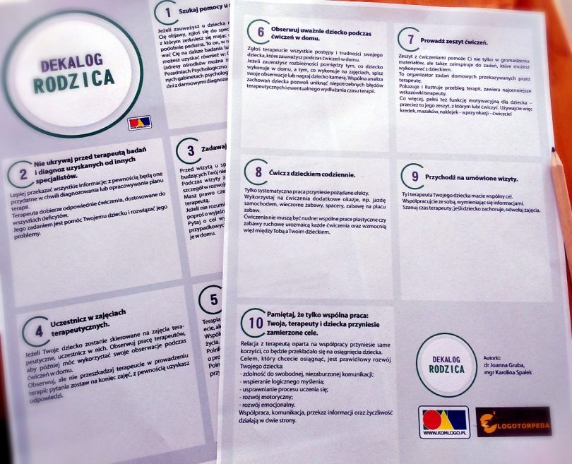 Chcesz pokazać Dekalog rodzicom dzieci, aby byli bardziej świadomi własnej roli w terapii dziecka?