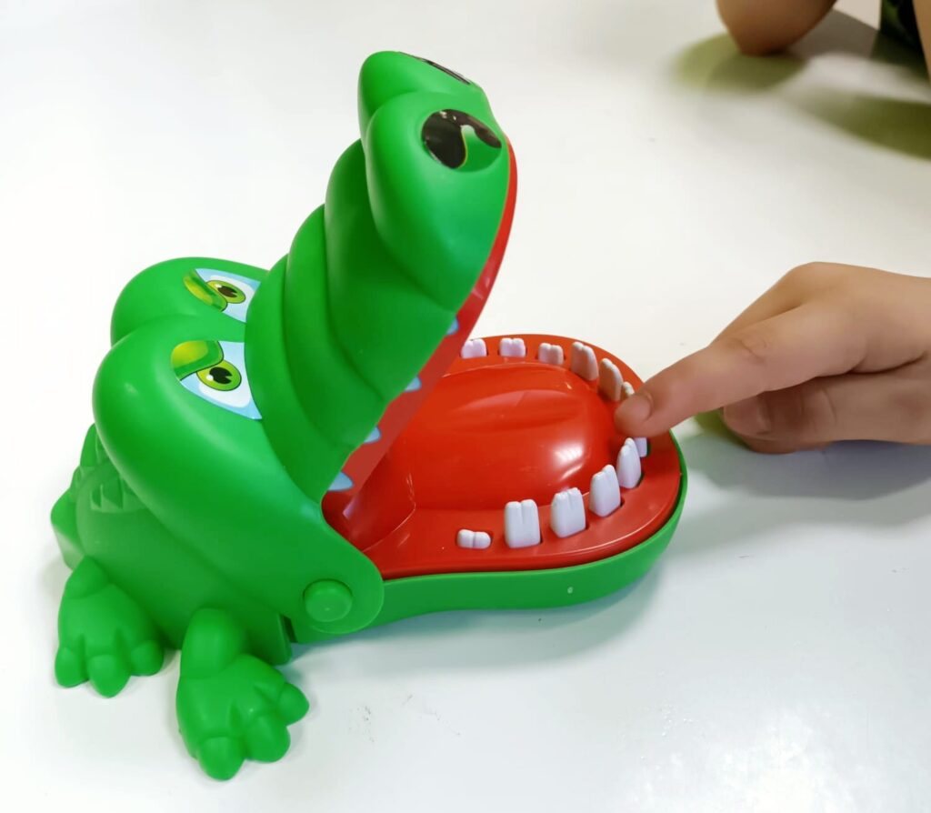 Z pewnością znasz popularną zabawkę, w której naciskasz losowo wybrane zęby i energicznie uciekasz, aby zęby krokodyla nie zatrzymały się na Twoim palcu. Na rynku znajdują się inne zabawki-zwierzaki, działające podobnie jak opisywany krokodyl: jest dinozaur, rekin i hipopotam.