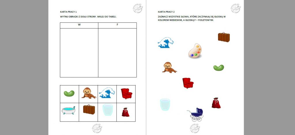 Warto zaznaczyć, że ćwiczenia, które są zaproponowane poniżej, nadają się zarówno do ćwiczeń słuchu fonemowego, mowy bezdźwięcznej, jak i ćwiczeń głosek F i W.